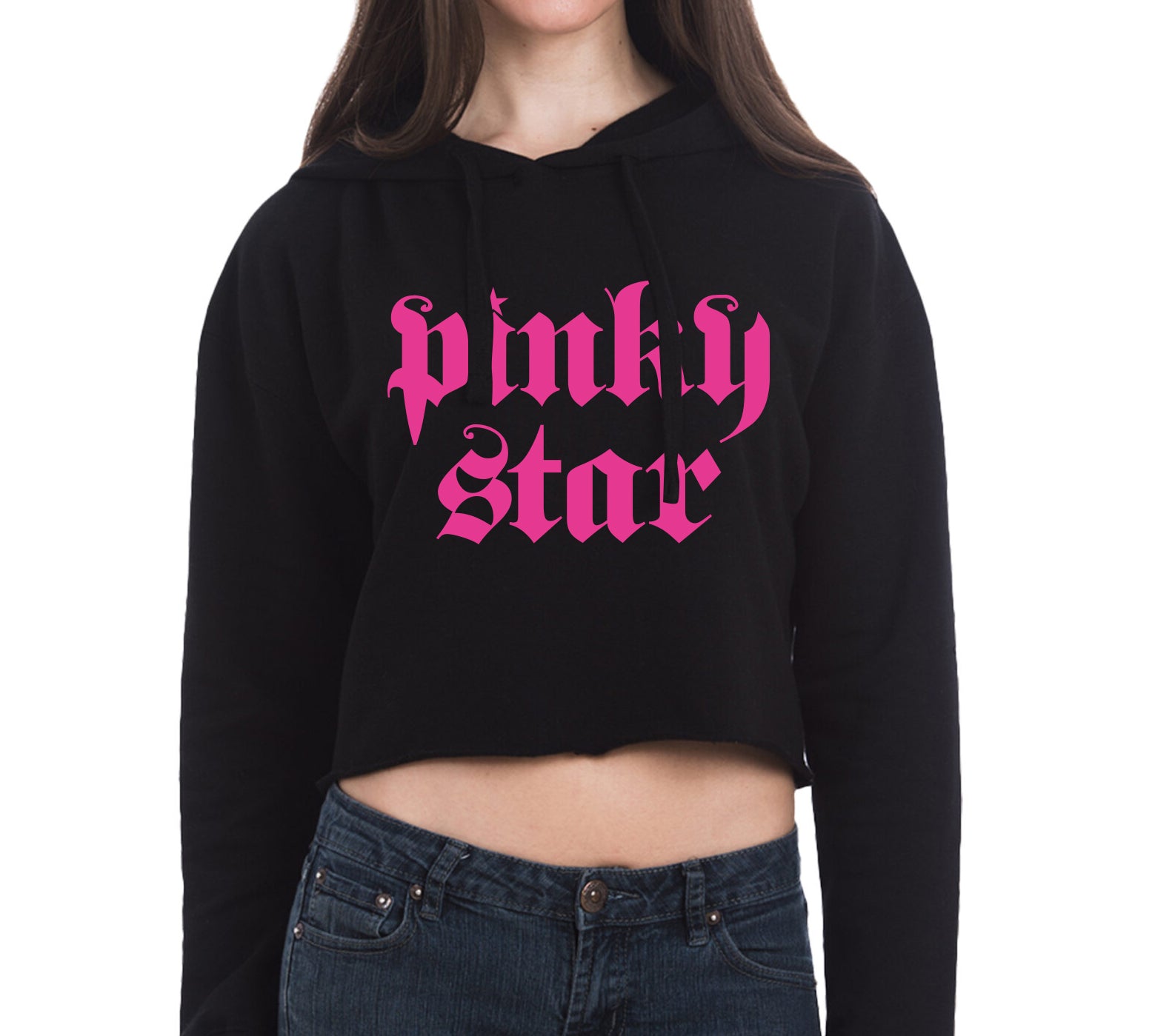 Pinky Star Logo Cropped Pullover Hoodie